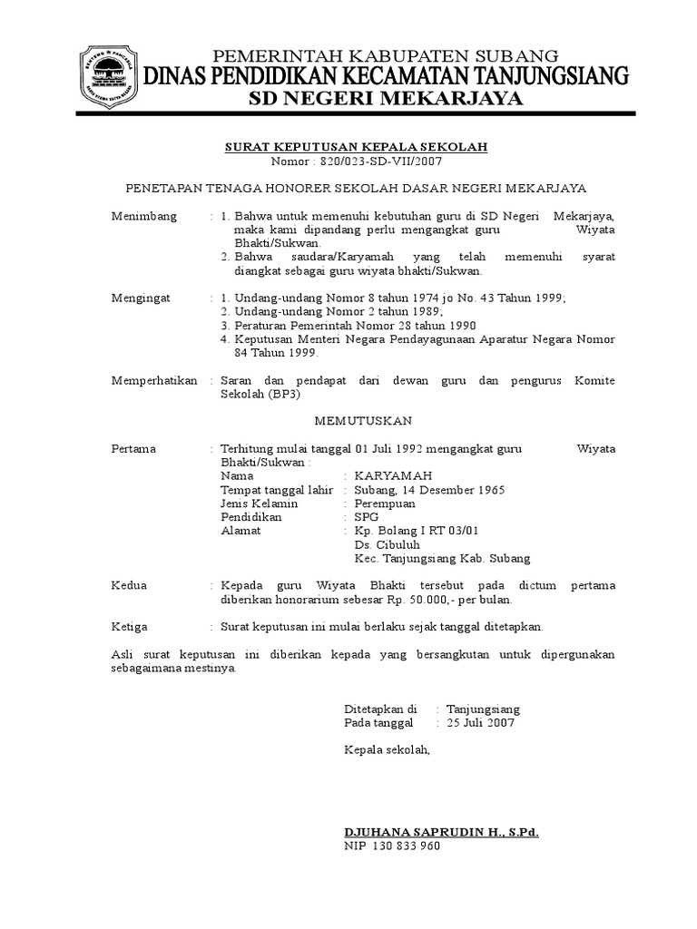Contoh Format Sk Guru Honorer Terbaru Dikdasmen Info | Dubai Khalifa
